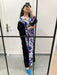 Purple & blue water pain fabric with black velvet.