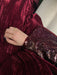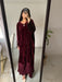 Burgundy velvet free sized dress with sequins sleeves. Length of dress is 56inches from the front & longer from the back 58inches.